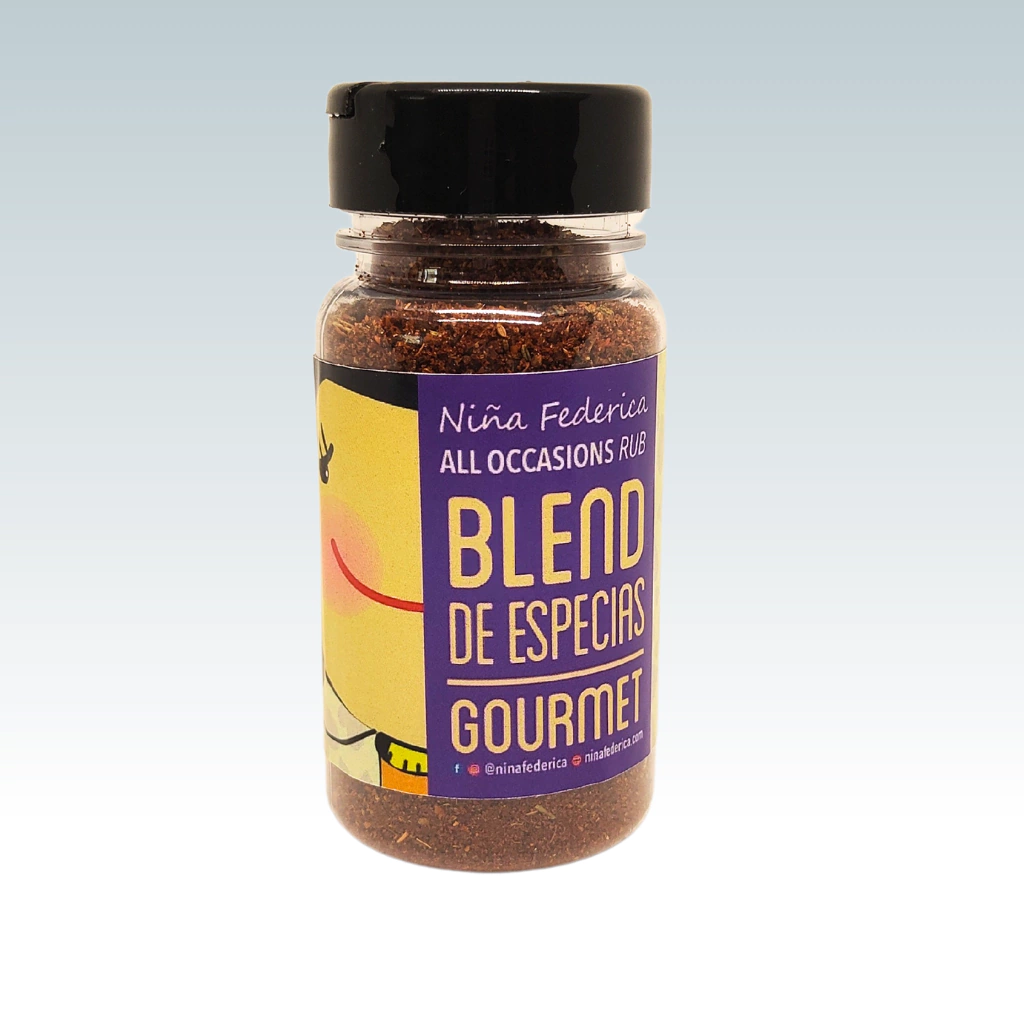 Ingredientes: Azúcar negra, pimentón dulce, semillas de apio, comino, coriandro, curry suave, pimienta blanca, jengibre, pimienta de jamaica, pimienta de cayena, mostaza, nuez moscada, romero.