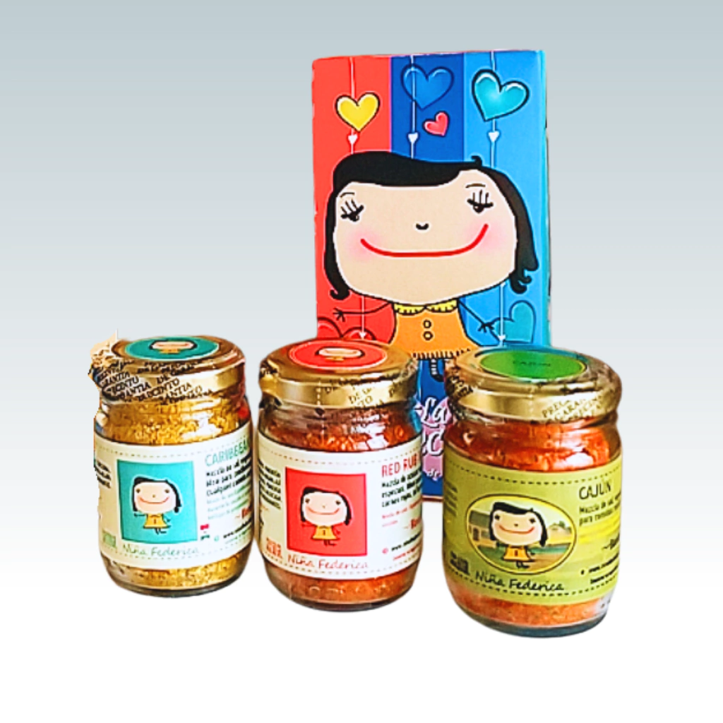 Nuestra caja de regalo x 3 blends de especias es una presentación muy colorida y hermosa para hacer un regalo atractivo y útil que contiene 3 frascos de nuestros condimentos.